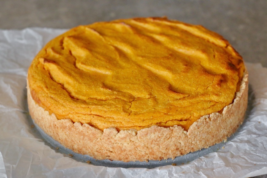 - Випікайте при 180 °C 30–40 хвилин. Гарбузовий пиріг має підрум’янитися. У центрі начинка може трохи тремтіти — це нормально.