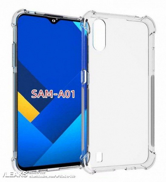 Тепер же у нас є комп’ютерні зображення Samsung Galaxy A01, які надав виробник захисних чохлів для смартфонів. Прозорий силіконовий чохол зовсім не заважає розгледіти Samsung Galaxy A01 у всіх деталях.