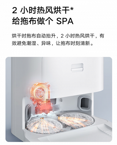 Зарядна станція не тільки миє швабру, а й сушить її гарячим повітрям, усуваючи залишки вологи та неприємний запах. За офіційними даними, очищення контейнера пилососа на базі займає лише 10 секунд. База для очищення має вбудований контейнер для сміття об’ємом 2,5 л, який виробник рекомендує очищати раз на місяць при регулярному прибиранні.