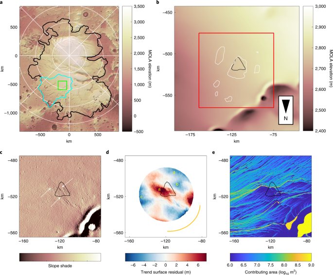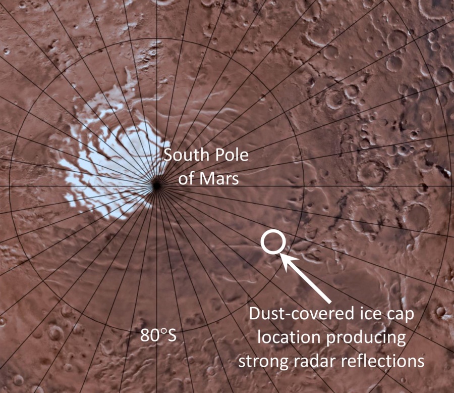 Донедавна вважалося, що полярні крижані шапки на Марсі повністю промерзли до самого основи через екстремально холодну атмосферу. У 2018 році дані із супутника Mars Express Європейського космічного агентства поставили під сумнів це припущення. Він виявив область біля льоду, яка сильно відображала сигнал радара, що було інтерпретовано як область рідкої води під крижаною шапкою.
