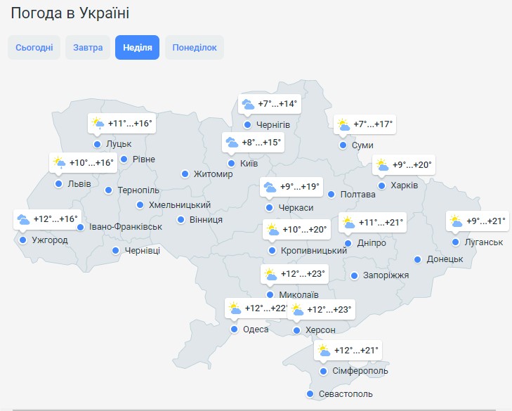 Південним регіонам з температурними показниками пощастить найбільше