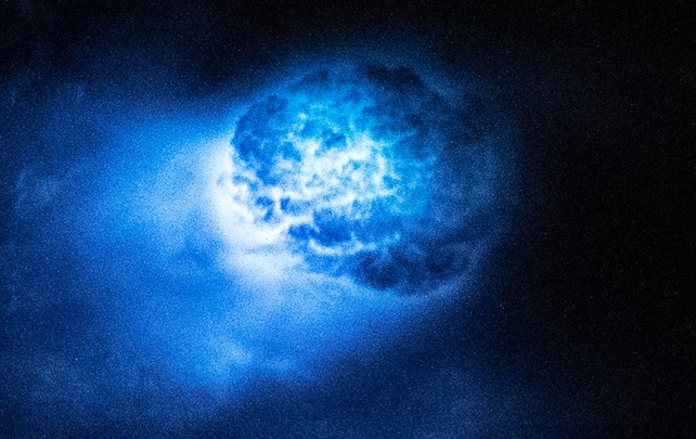 Друга синя пляма, яку можна побачити у верхньому правому куті зображення, є результатом викривленого світла від Місяця.