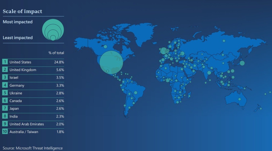 Звіт Microsoft чітко вказує, що здебільшого зловмисники переслідують фінансову вигоду, а не політичні цілі. Глобальні показники це підтверджують: