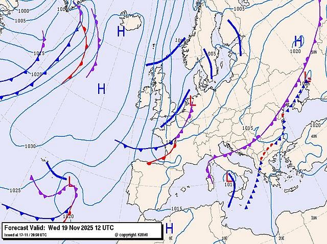 Уже завтра, 19 листопада, по південній частині країни переміщуватимуться фронти, які принесуть опади. Дощі очікуються на Півдні, у Донецькій та Луганській областях, на Дніпропетровщині, подекуди на Черкащині та в Кропивницькому з навколишніми районами. Із пониженням температури частина цих дощів переходитиме в мокрий сніг. На решті території істотних опадів не прогнозують.