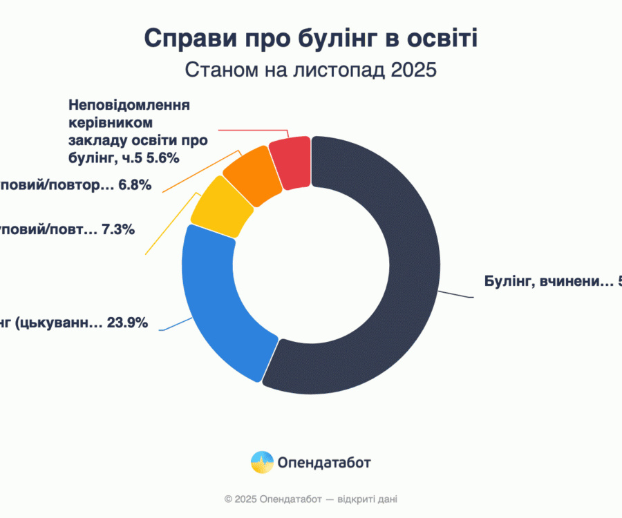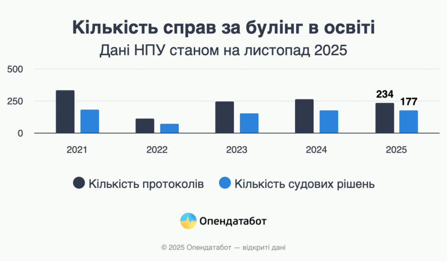 Загалом за 10 місяців 2025 року в Україні було складено 234 адміністративні протоколи щодо булінгу у закладах освіти.