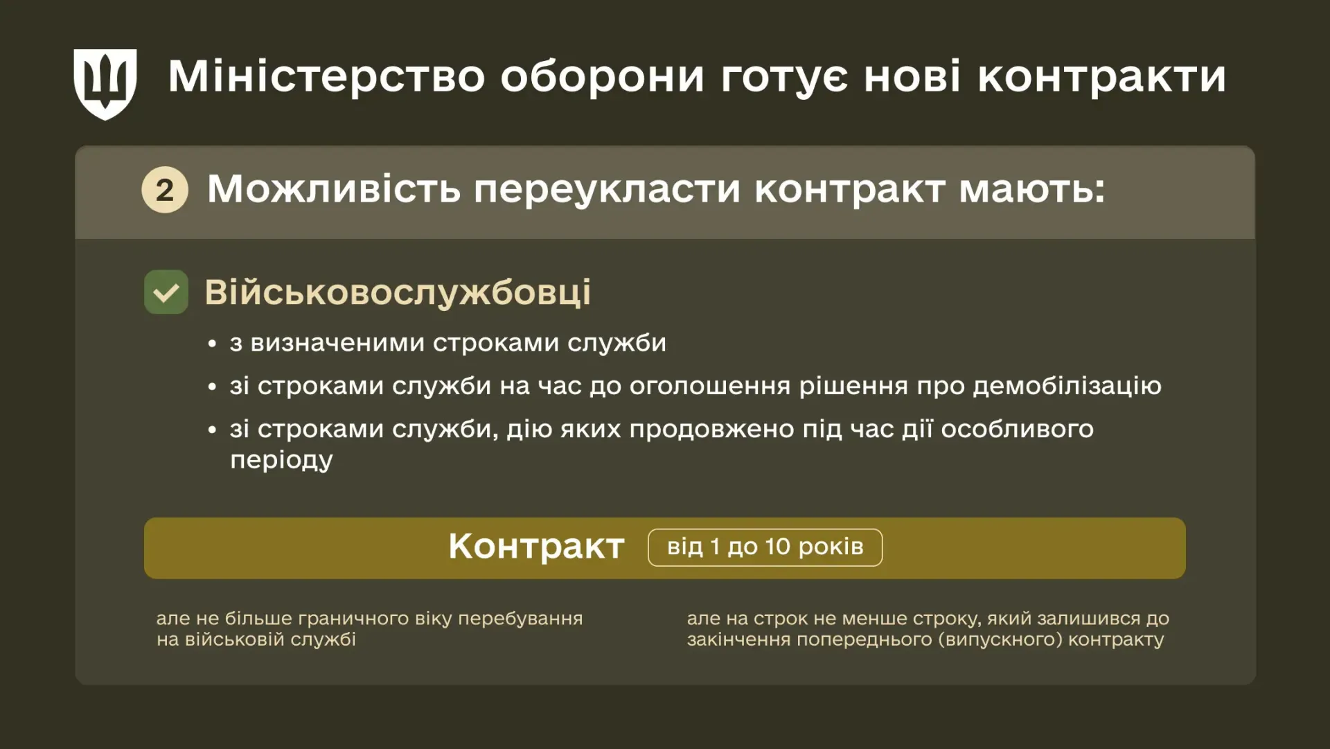 • Військовослужбовців, які вже служать за мобілізацією (тобто можливість перевестися на контрактні умови).