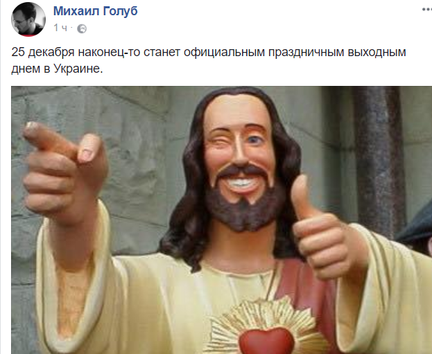 “25 грудня нарешті стане офіційним святковим вихідним днем ​​в Україні”, – констатує блогер Михайло Голуб.