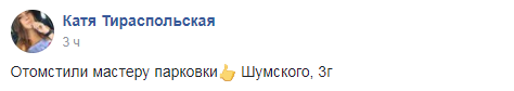 “Помстилися майстру парковки – Шумського, 3г”, – написала вона.
