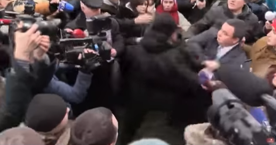 У Києві 2 січня один з учасників акції накинувся на голову управління Нацполіції Київської області Дмитра Ценова, коли він вийшов до мітингувальників, які вимагають знайти убивць юриста Ірини Ноздровської.