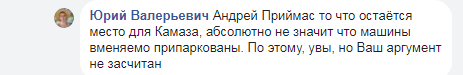 “Те, що залишається місце для Камаза, абсолютно не означає, що машини нормально припарковані”, – пояснив Юрій Валерійович.