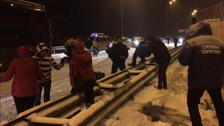 Так, увечері 20 березня на трасі Київ-Чоп у сторону Львова підйом дороги не могли подолати вантажівки. Деякі аж розвертало на дорозі. Рятувальники витягали ваговози тягачами.