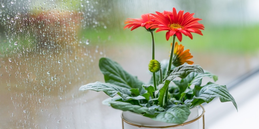 Цілий рік квітку потрібно тримати в умовах яскравого розсіяного освітлення, а влітку — берегти від прямих сонячних променів. У зимовий період знадобиться фітолампа: вмикайте її зранку й увечері, щоб штучно збільшити світловий день до 12–16 годин на добу. З весни до осені поливайте герберу після підсихання верхнього шару ґрунту так, щоб він був помірно вологим. Узимку можна дозволяти ґрунту просихати приблизно на третину горщика. У будь-якому разі важливо, щоб вода не потрапляла в розетку листя, тому варто направляти потік по краю горщика.