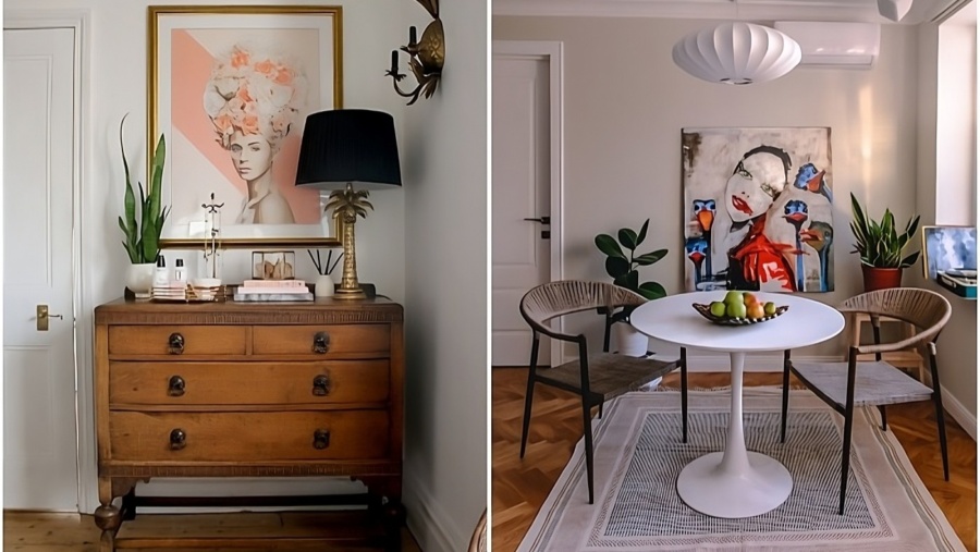 Головне в цій ситуації — не переборщити, обрати правильне розташування предметів і не порушувати пропорції. Наприклад, ви можете зробити акцент на двох постерах в однакових рамах, колірна гама яких підкреслить стиль інтер’єру, а потім доповнити їх парними подушками на дивані та підсвічниками на журнальному столику.
